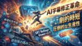 Nano Banana Pro Prompt Maker 完全ガイドのヒーローイメージ。中央で光り輝くバナナ型のデバイスがAIプロンプト生成ツールを象徴し、周囲には「難しい」「プロンプトが作れない」「時間がかかる」といったAI画像生成プロンプト作成の課題を表す吹き出しが描かれている。右側には未来都市と人物が配置され、問題解決と創造性を示唆する。